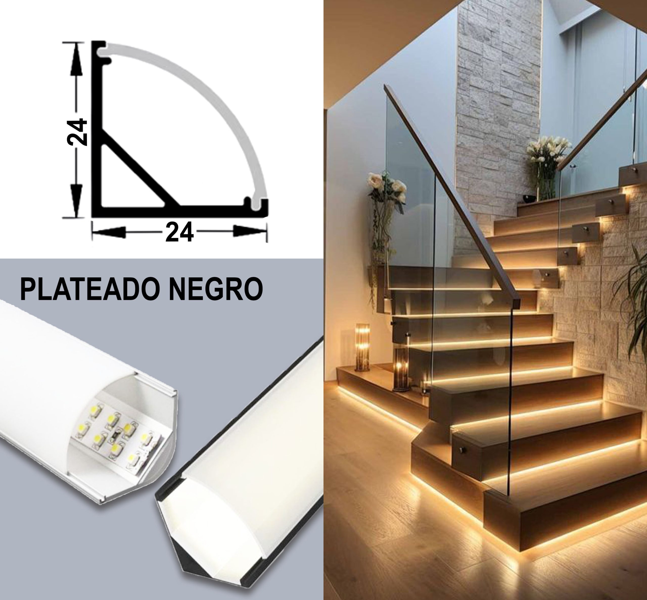 Perfil Esquinero De 24 x 24 mm Para Led Oval De Aluminio