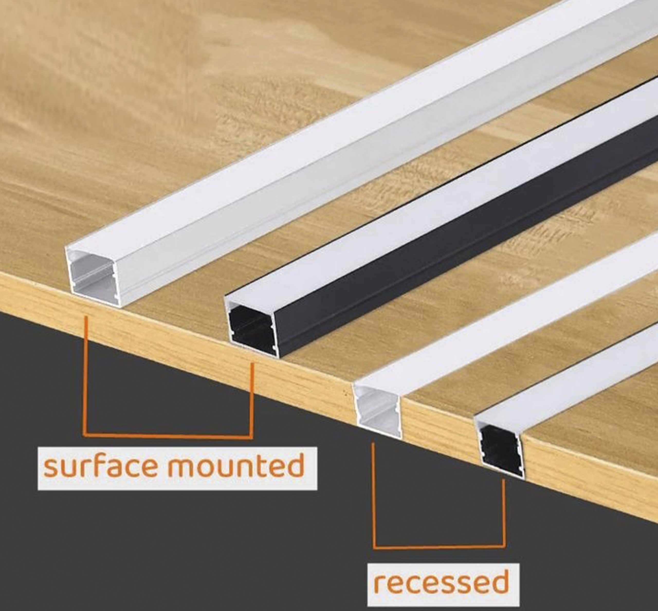 Perfil De Aluminio Adosado Negro Para Cinta Led