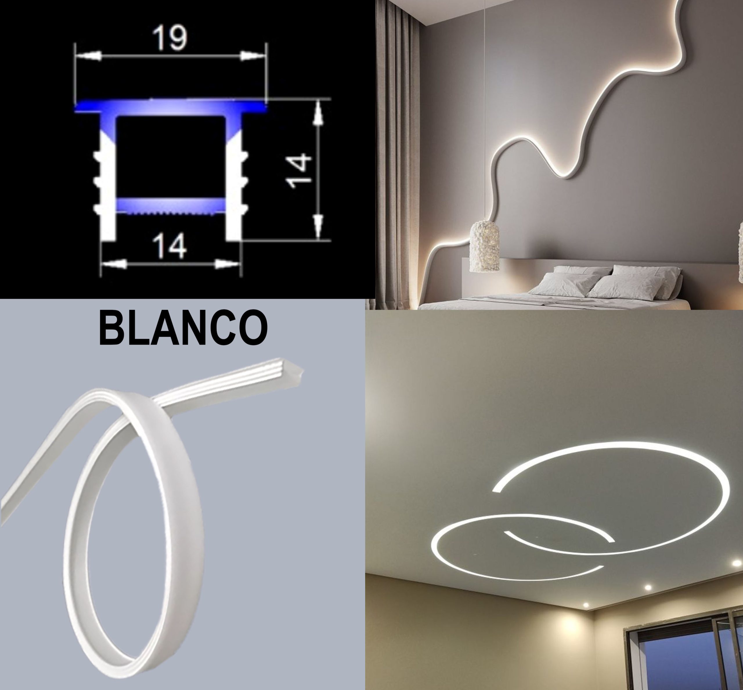 Perfil De Aluminio Empotrado Flexible Para Cinta Led