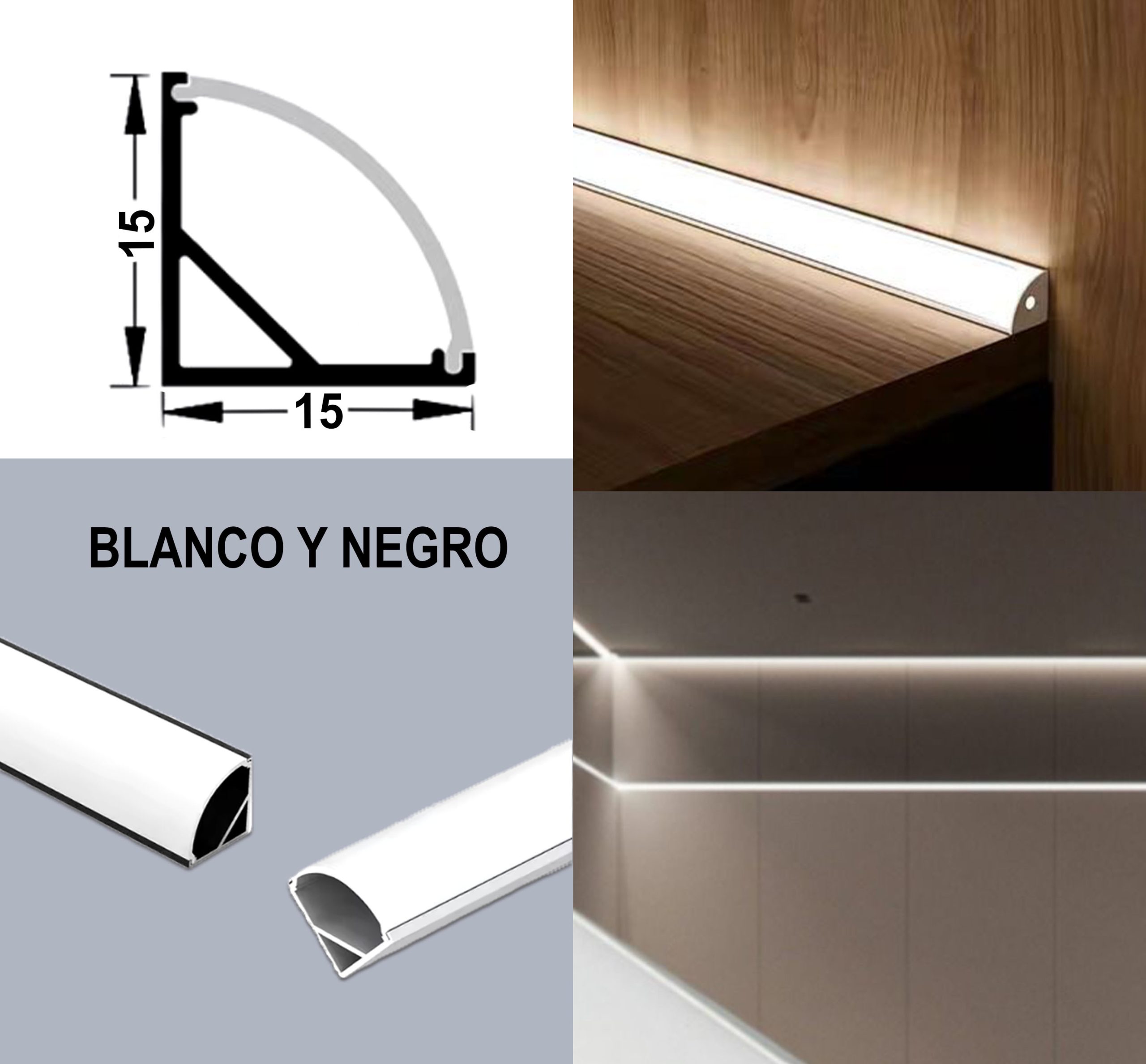 Perfil Esquinero De 15 x 15 mm Para Led Oval De Aluminio